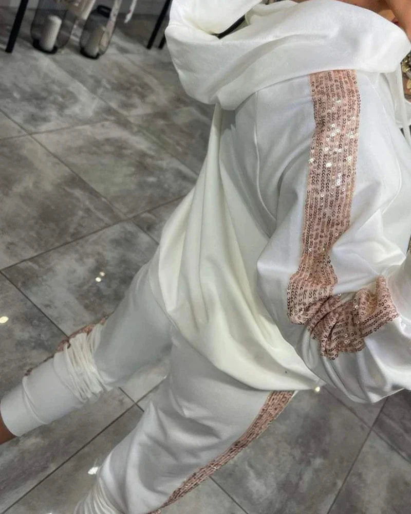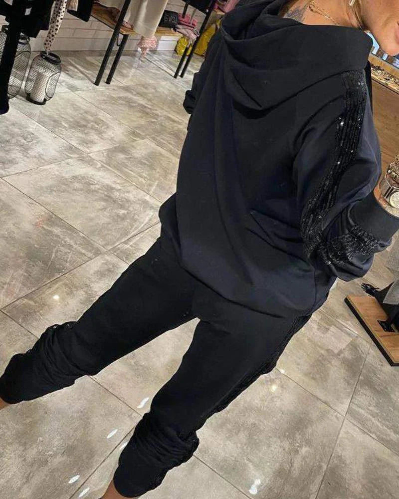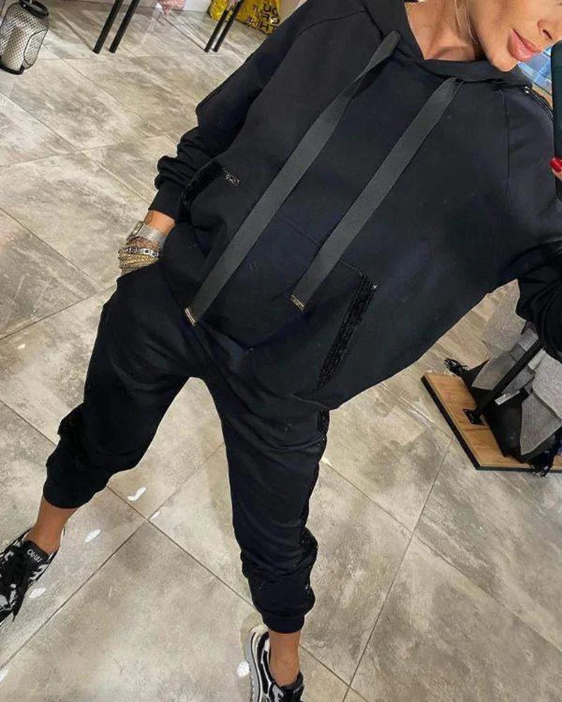 Dette todelte settet er designet for å tilby den perfekte balansen mellom eleganse og komfort, og er ideelt for kjølige høstdager eller kalde vintre, da det gir en koselig følelse uten å gå på bekostning av stilen. Det moderne designet og de gjennomtenkte detaljene fremhever silhuetten med et sofistikert og allsidig preg, perfekt for alle tider på døgnet.
